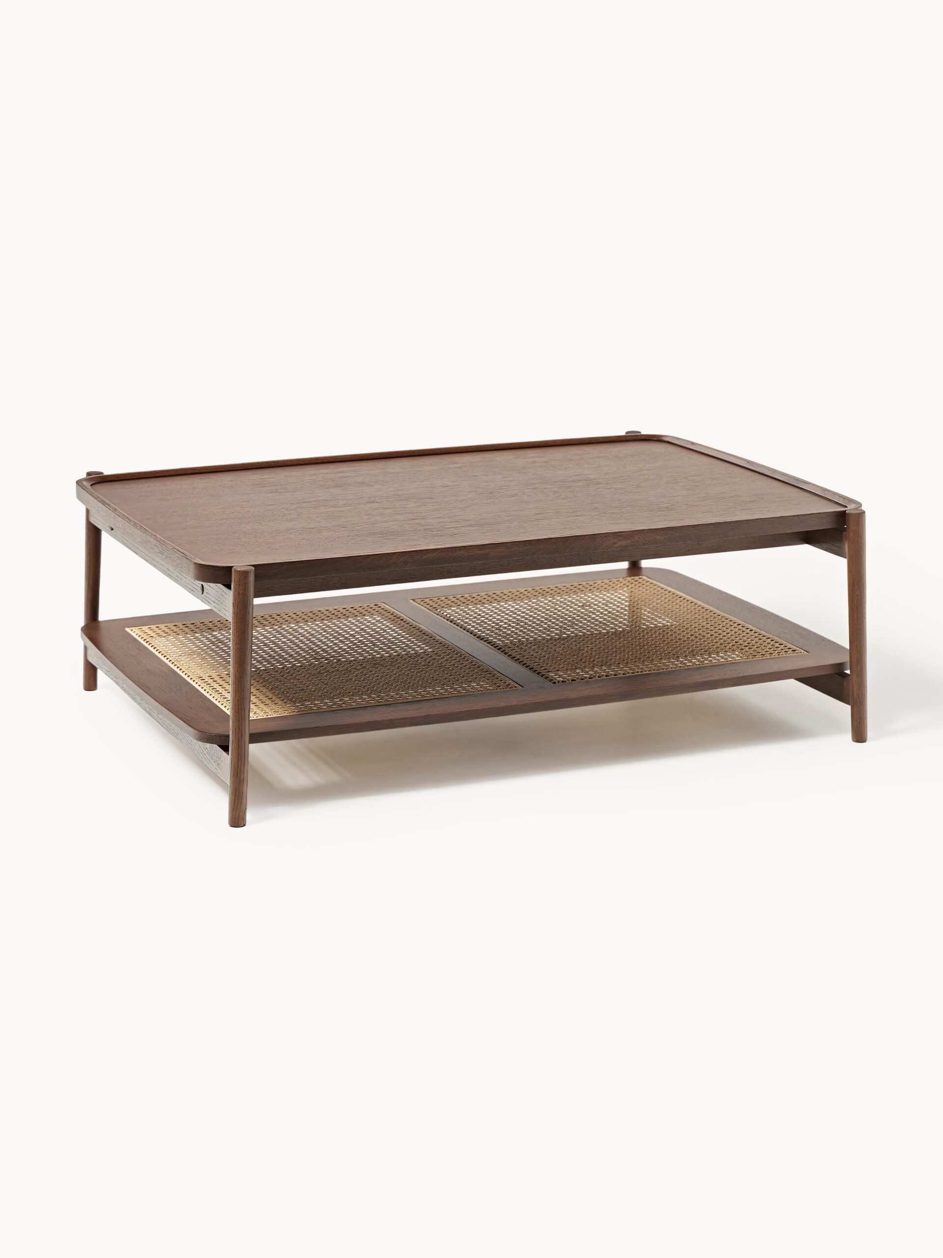 Drewniany stolik kawowy Libby z półką z plecionki wiedeńskiej