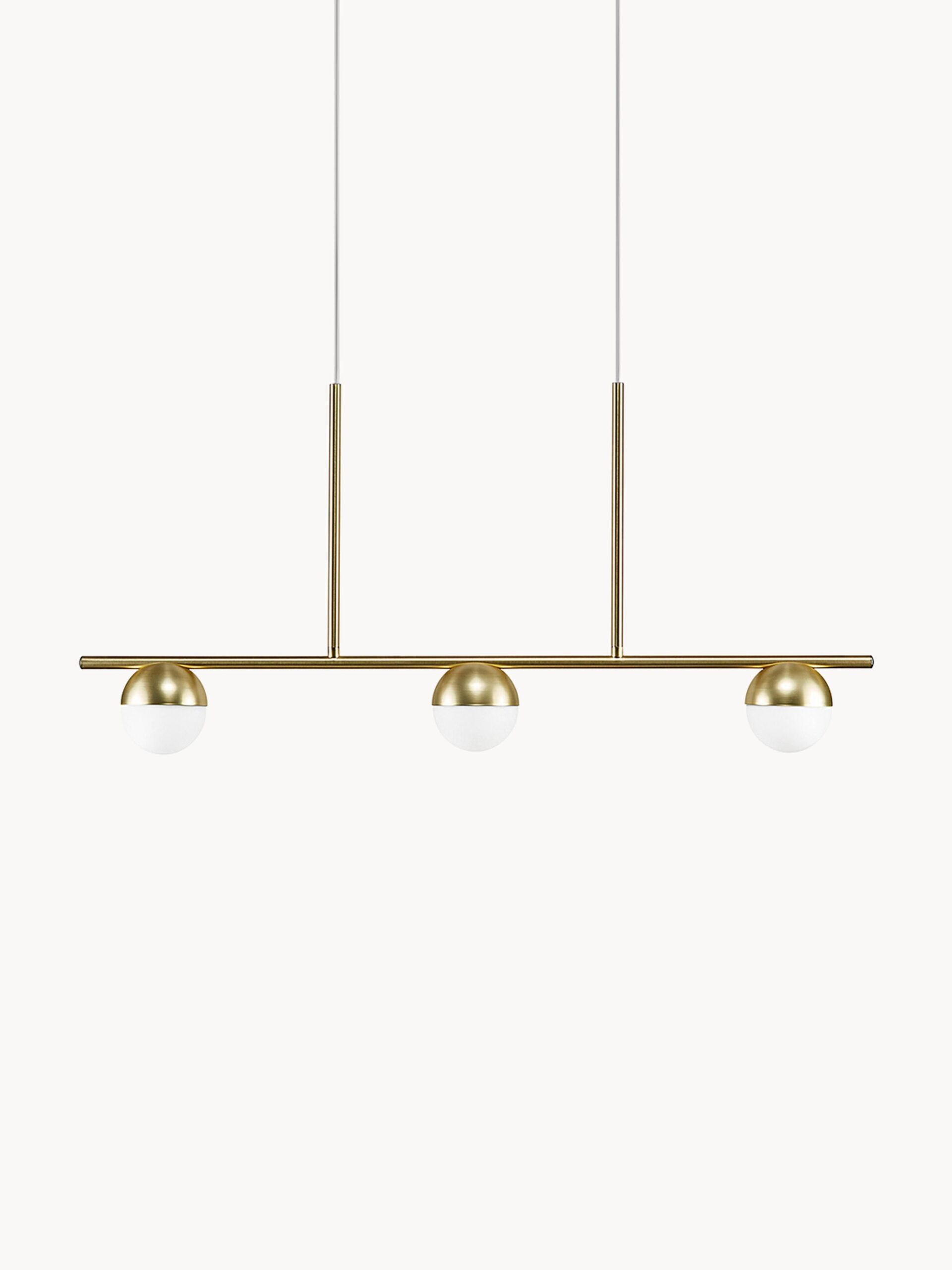 NA LISTĘ ŻYCZEŃNA LIŚCIEContina to ekskluzywna lampa wisząca o szerokości 90 cm wyposażona w luksusowe klosze z mlecznego szkła opalowego zapewniające miękkie i przytulne światło. Jej nowoczesna horyzontalna forma oraz najwyższa jakość wykonania sprawiają że jest to idealny i bardzo efektowny wybór do Twojej eleganckiej jadalni.