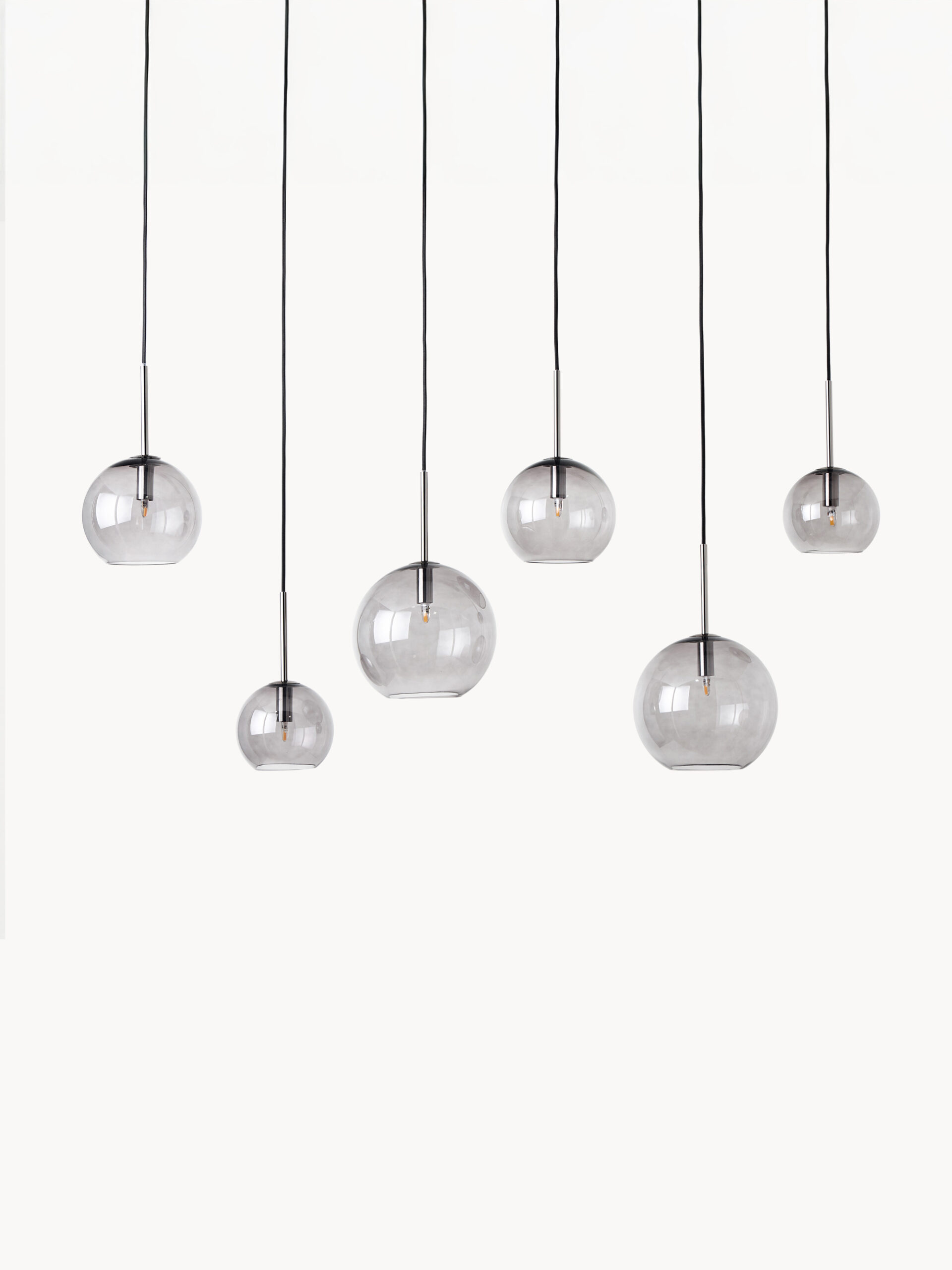Raquel to spektakularna lampa wisząca w formie dużej szklanej kuli, która łączy monumentalną skalę z wizualną lekkością. Jej transparentna bryła i czysta forma sprawiają, że stanowi ona luksusowy i nowoczesny punkt centralny każdego wysokiego wnętrza.