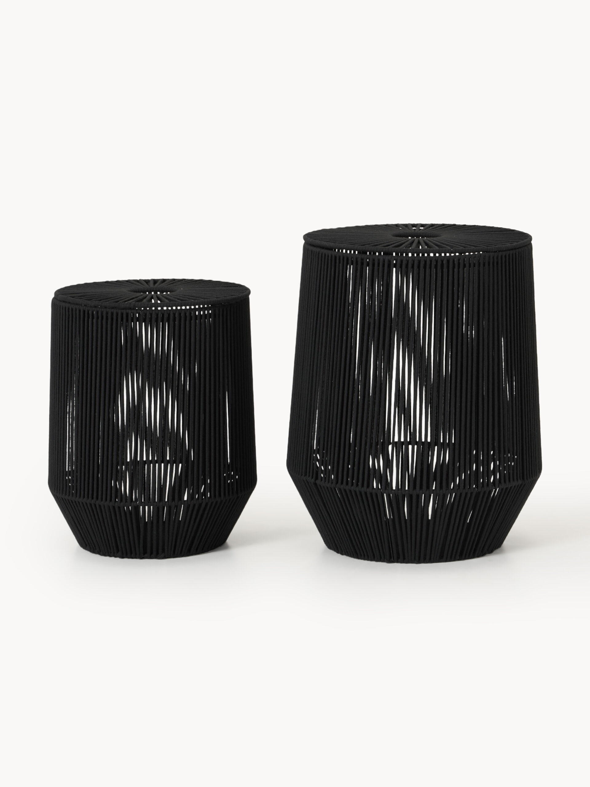 To zestaw dwóch ręcznie tkanych koszy z naturalnej liny, które łączą funkcję praktycznego pojemnika z dekoracyjnym charakterem. Ich miękka struktura oraz autentyczny splot sprawiają, że są one idealnym dopełnieniem każdej stylowej łazienki lub garderoby.