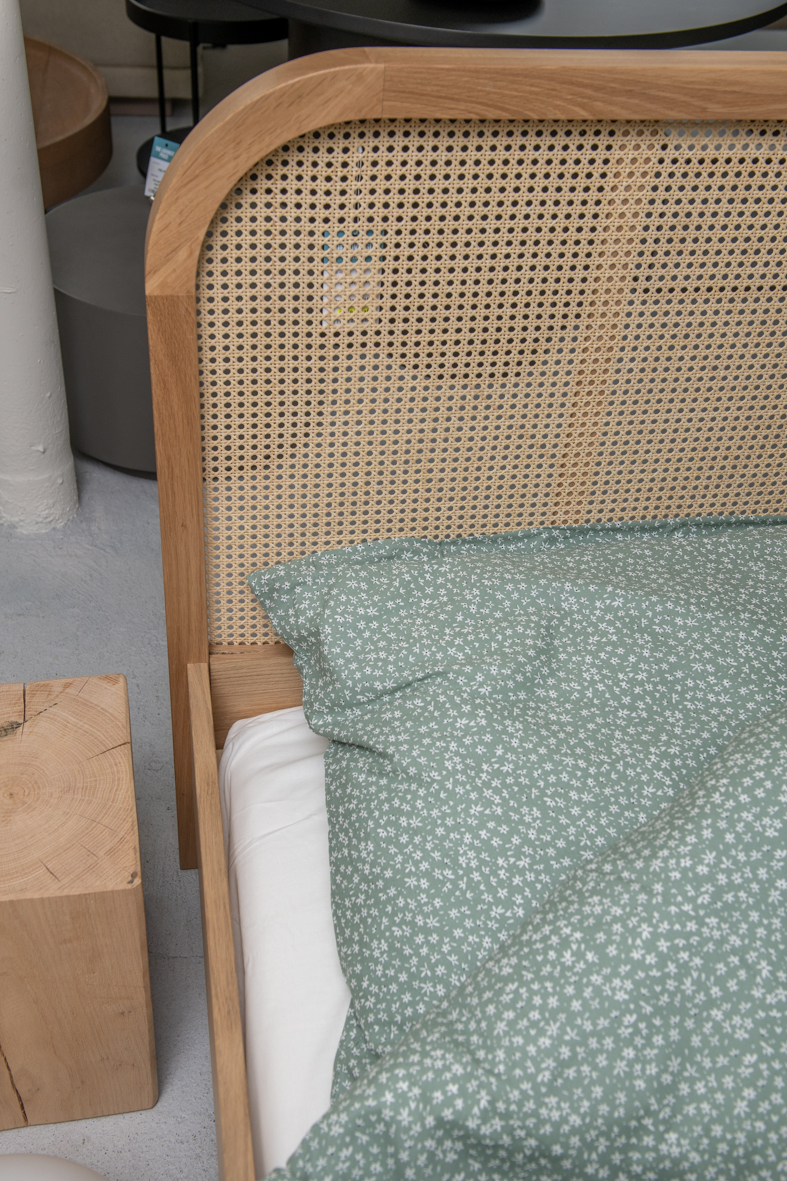 Drewniane łóżko Jones z plecionką wiedeńską – styl boho