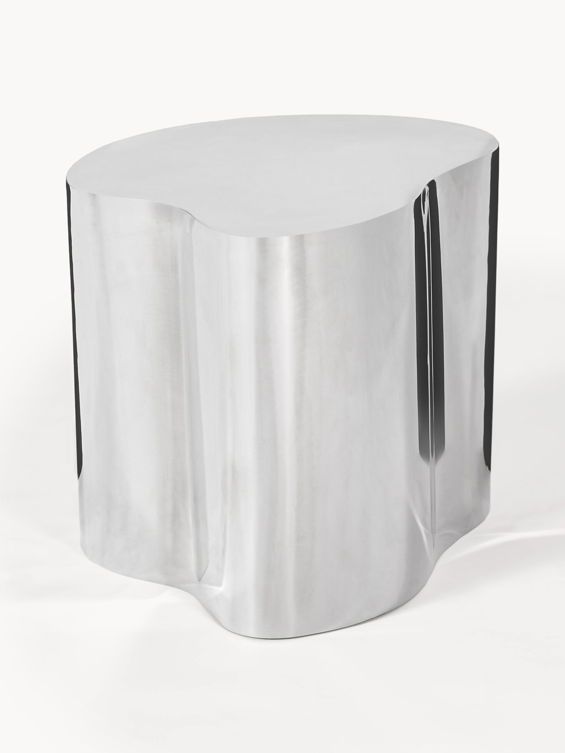 Stolik pomocniczy Dale to hołd dla płynnych kształtów występujących w naturze, zaklęty w trwałym metalu. Jego organiczna forma zrywa z tradycyjną geometrią mebli, oferując sylwetkę, która wydaje się niemal żywa i zmienia swój wygląd w zależności od perspektywy. Wykonany z precyzyjnie formowanego metalu, stolik łączy w sobie surowość materiału z delikatnością obłych krawędzi. Matowe wykończenie powierzchni nadaje mu nowoczesny, rzeźbiarski sznyt, sprawiając, że Dale przestaje być jedynie praktycznym meblem, a staje się autonomicznym obiektem artystycznym. Mimo swojej wizualnej lekkości, konstrukcja jest stabilna i solidna, stanowiąc doskonały przykład współczesnego wzornictwa, które szuka inspiracji w biomorficznych strukturach.