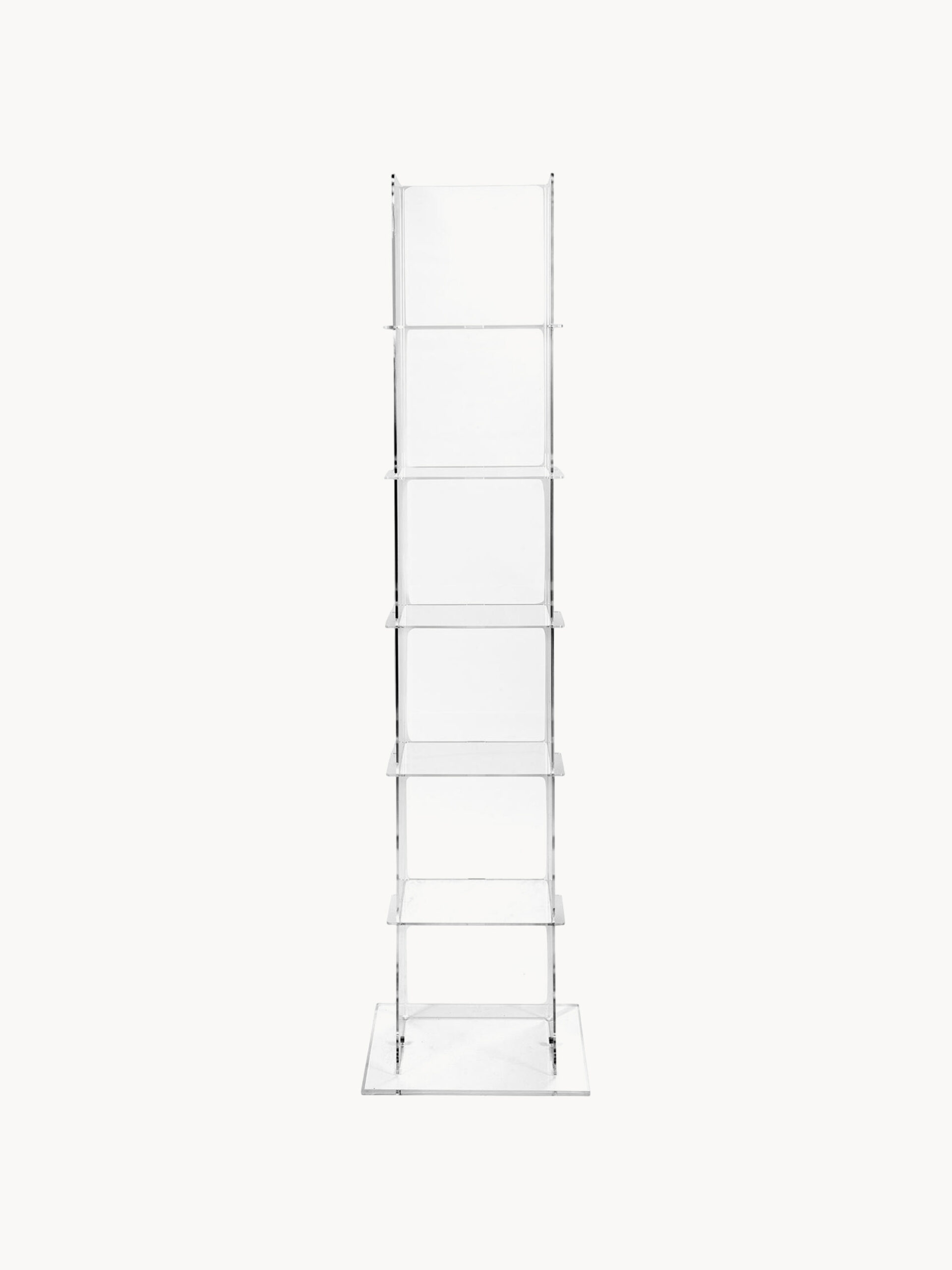 Babel to ekskluzywny regał z przezroczystego akrylu PMMA o wysokości 152 cm z systemem lewitujących półek o krystalicznym wykończeniu. Jego pełna przejrzystość oraz smukła sylwetka sprawiają że jest to idealny i bardzo trwały wybór do Twojego nowoczesnego salonu.