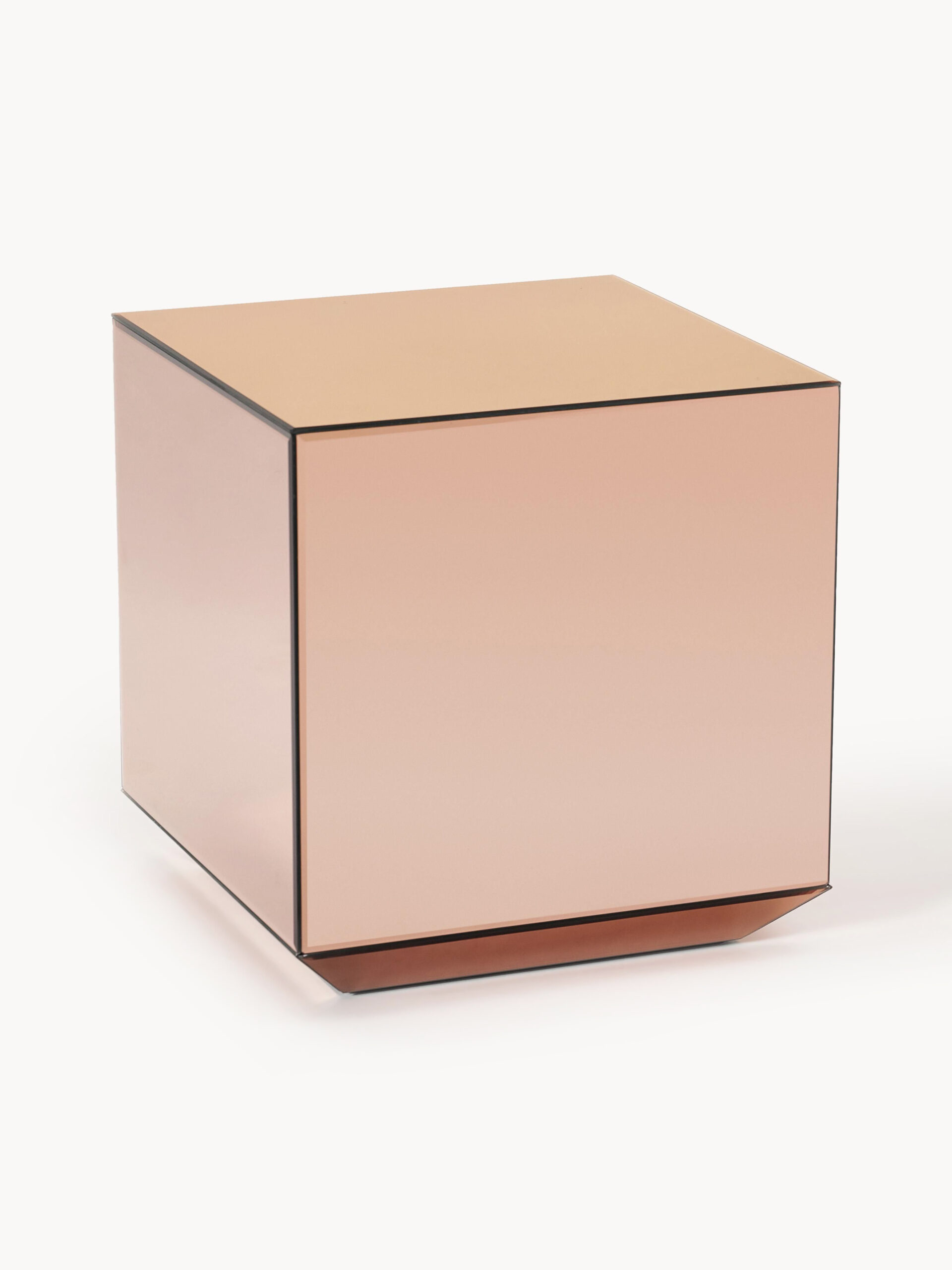 Spektakularny stolik pomocniczy: Speculum ustawiony obok sofy stanowi prestiżową podstawę pod kieliszek wina lub luksusową świecę przyciągając wzrok swoimi refleksami.