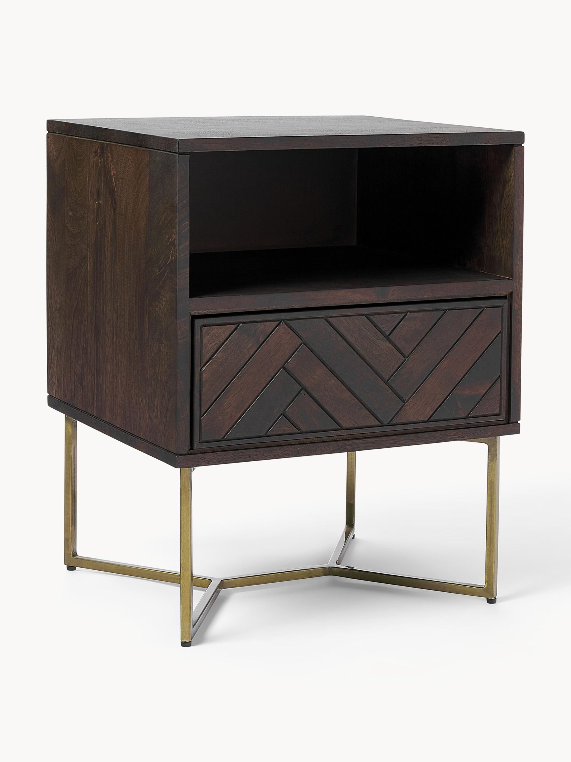 Szafka nocna Luca z drewna mango z wzorem jodełki, 45×57 cm