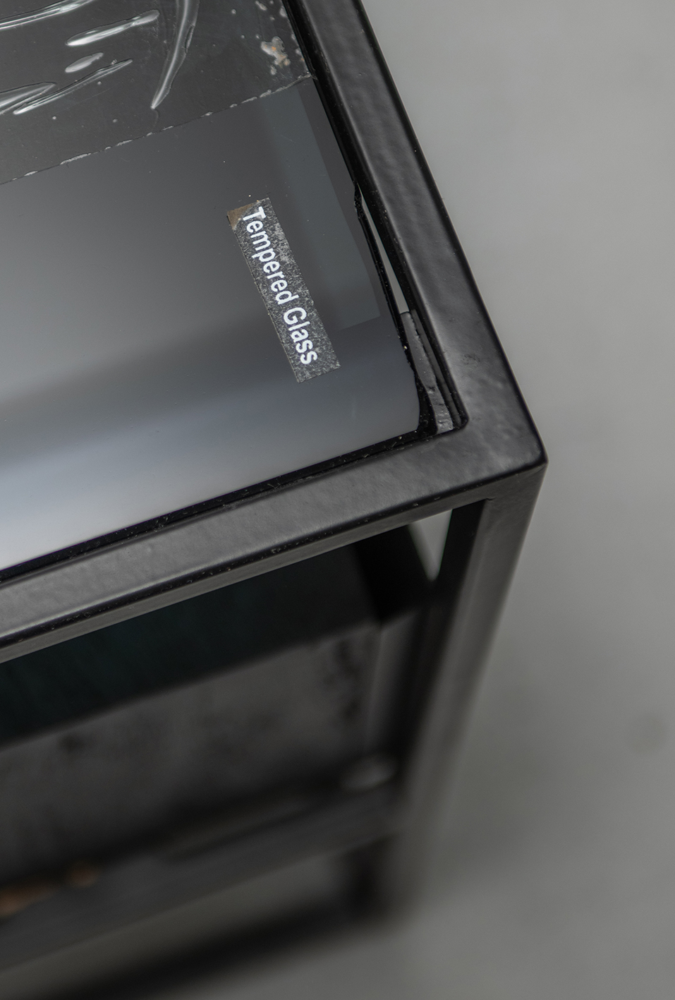 Odpryśnięcie na szkle i zarysowania na szufladzie.