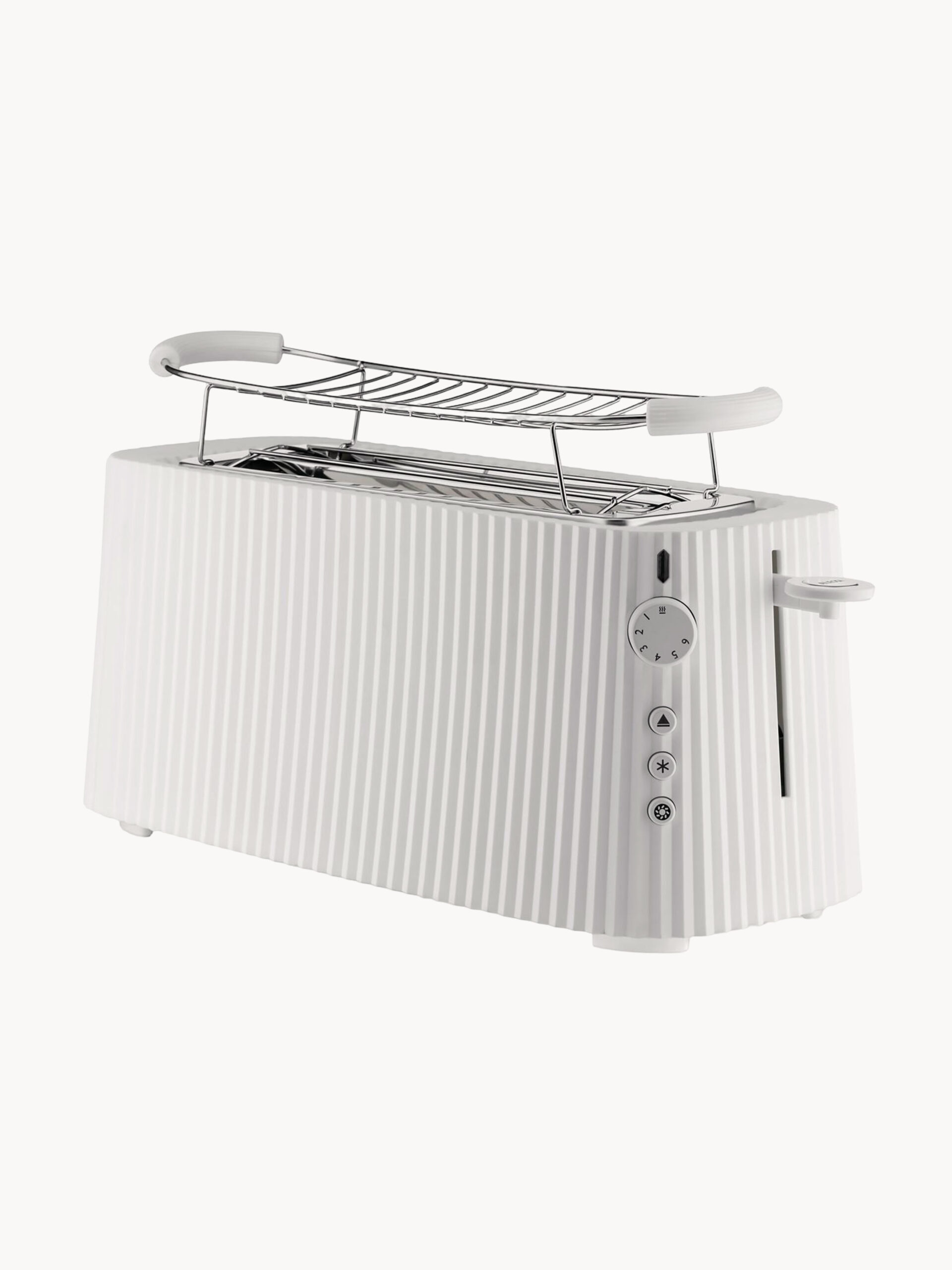 Designerski toster Plissé marki Alessi z charakterystyczną plisowaną powierzchnią. Włoskie wzornictwo łączy funkcjonalność z elegancką formą.