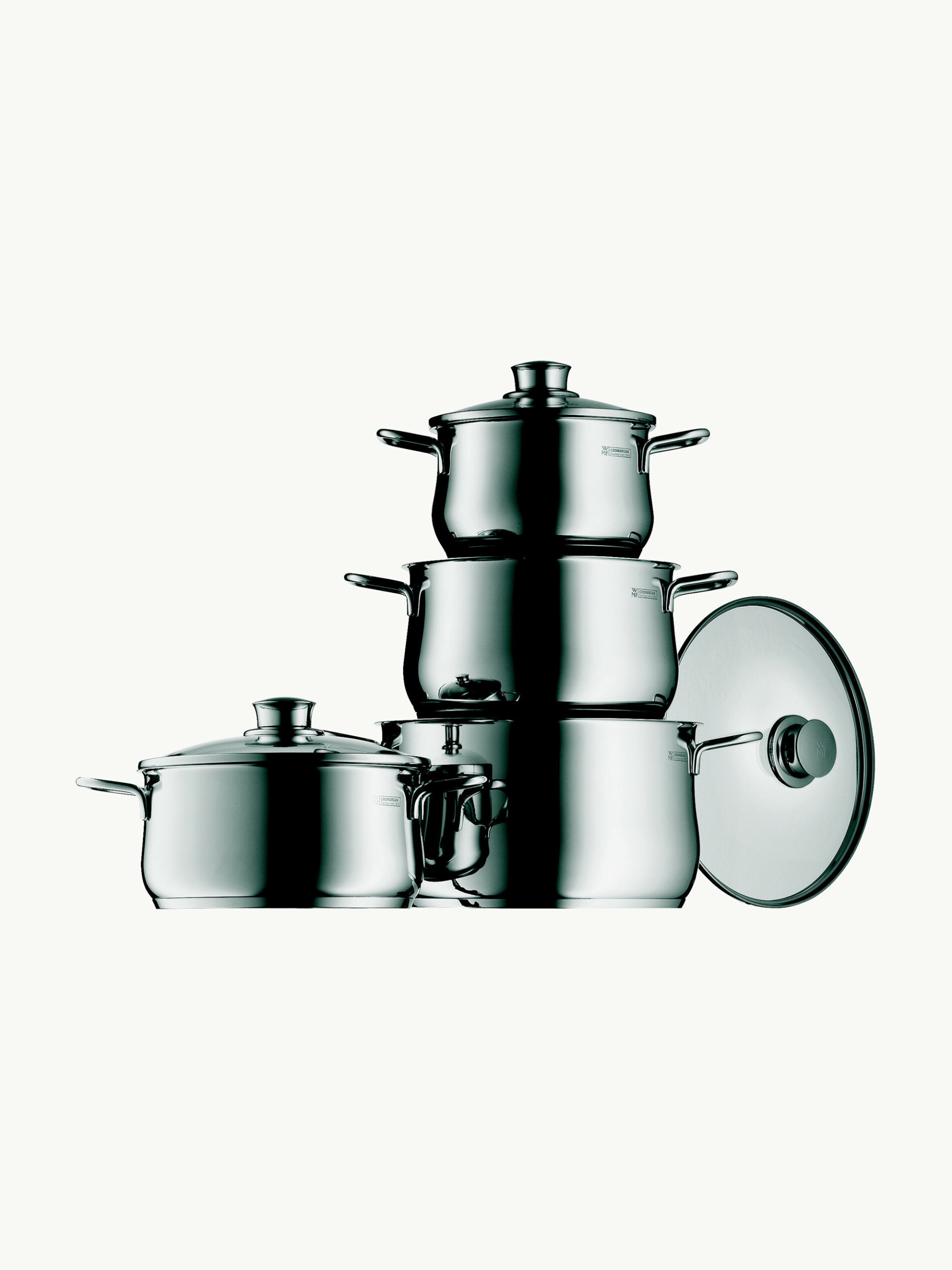 Zestaw 8 garnków Diadem Plus ze stali nierdzewnej Cromargan® to profesjonalna propozycja dla kuchennych entuzjastów. Certyfikowana stal nierdzewna Cromargan® 18/10 firmy WMF zapewnia trwałość, higienę i doskonałe przewodnictwo ciepła.