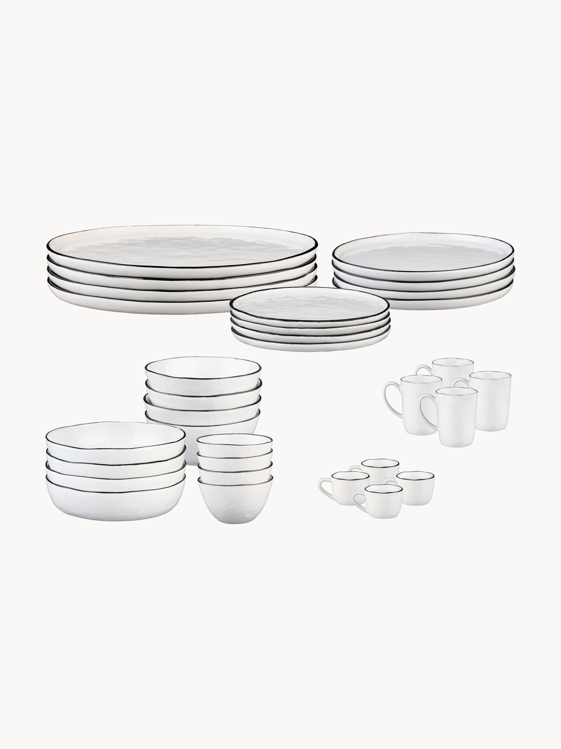 Pure to rozbudowany zestaw naczyń obejmujący 32 elementy o minimalistycznym designie i nieskazitelnej białej barwie. Wysoka jakość ceramiki oraz uniwersalna forma sprawiają że jest to idealna zastawa na każdą okazję łącząca trwałość z wyjątkową elegancją.